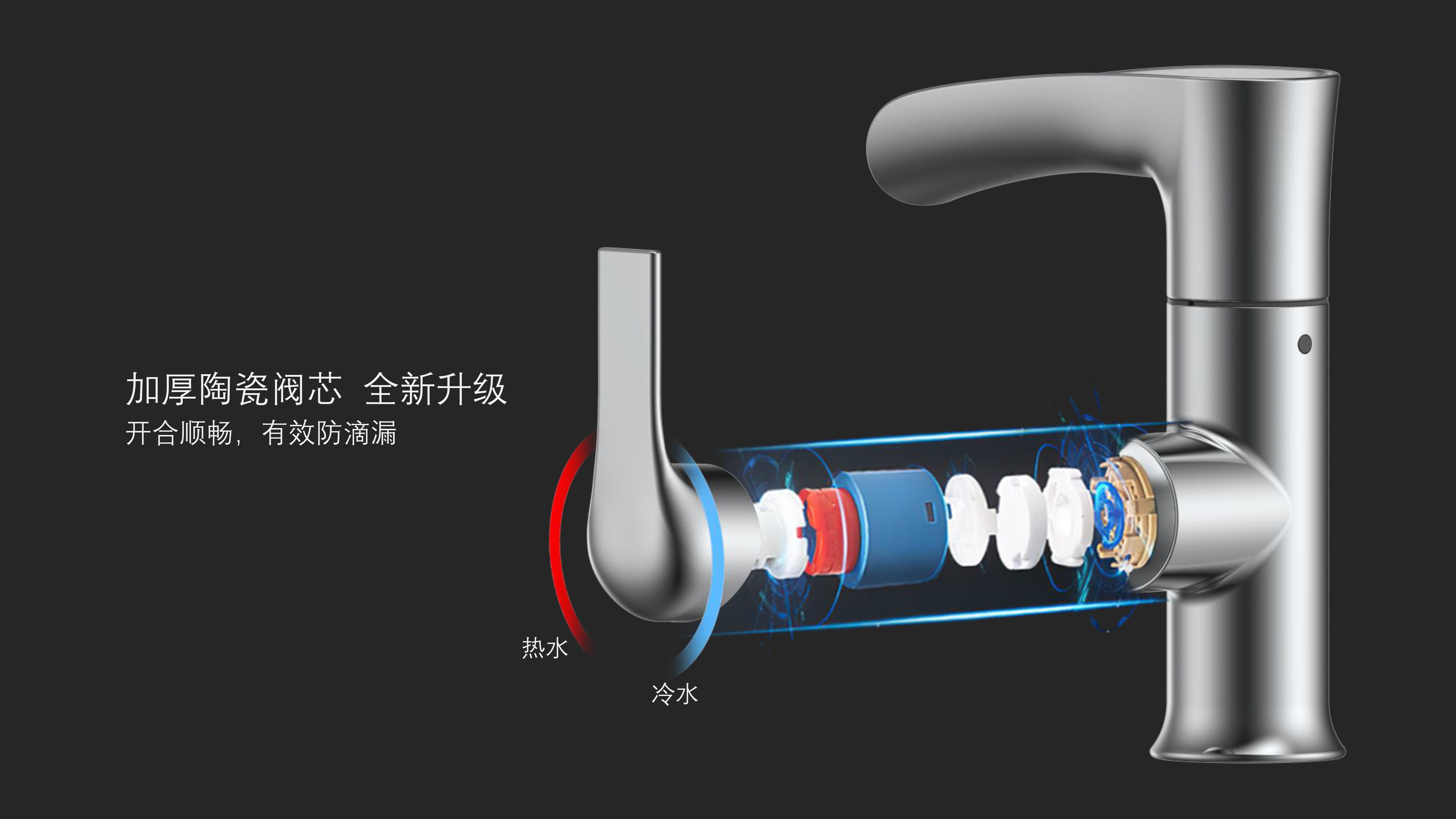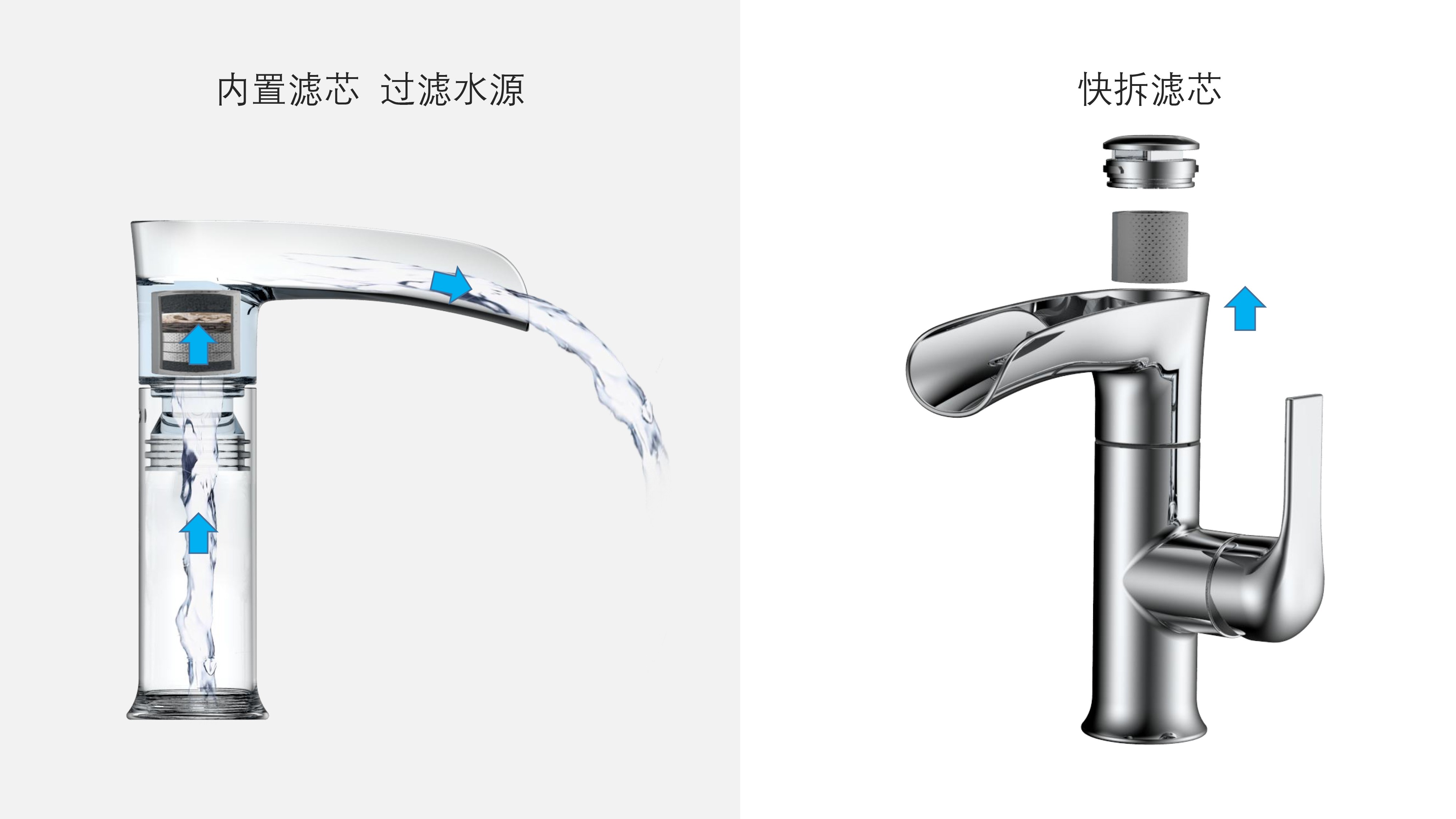 簡(jiǎn)約時(shí)尚設(shè)計(jì);加厚陶瓷閥芯開(kāi)合順暢,有效防滴漏;內(nèi)置快拆可更換過(guò)濾濾芯;